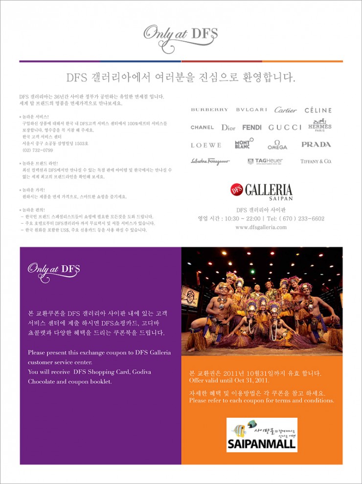 사이판몰에서는 사이판 최대 면세점 DFS 갤러리아와 연계하여 아래와 같이 특별 프로모션을 실시합니다.