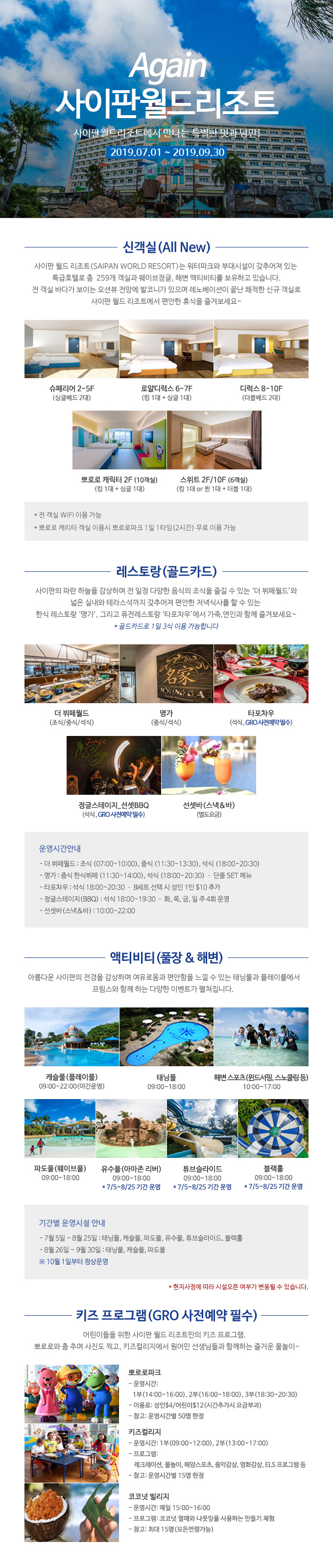 사이판 월드리조트 7월 운영 시설 관련 공지