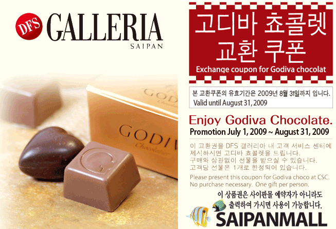사이판 DFS 갤러리아 상품권 증정 프로모션 페이지 정보 작성자 쪽지보내기 메일보내기 홈페이지 자기소개 아이디로 검색 전체게시물 쪽지보내기 메일보내기 홈페이지 자기소개 아이디로 검색 전체게시물 작성일09-06-30 16:22 조회12,067회 댓글0건 관련링크 이전글 다음글 목록 본문 →DFS Galleria 쿠폰출력하기→GODIVA 초코렛 쿠폰출력하기 댓글목록 등록된 댓글이 없습니다. 이전글 다음글 목록